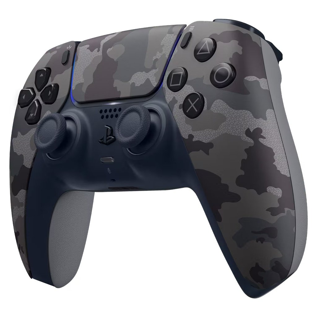 El Control PS5 DualSense Camuflado (Gray Camouflage) combina todas las funciones innovadoras del mando inalámbrico de PlayStation 5 con un diseño exclusivo en tonos grises, inspirado en un patrón camuflado que incorpora sutilmente los íconos clásicos de PlayStation.